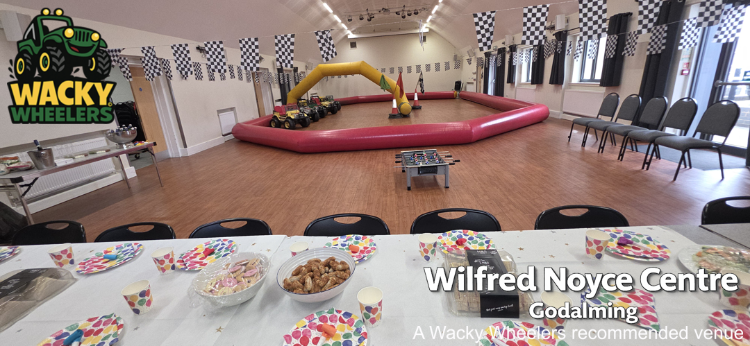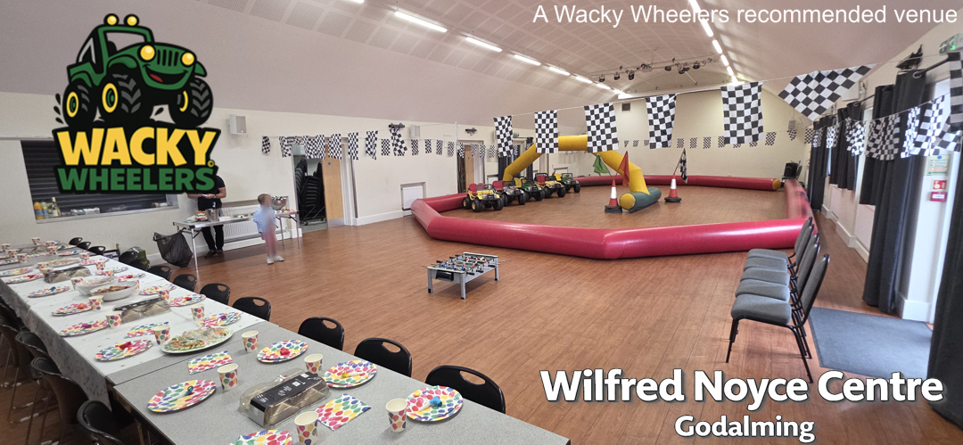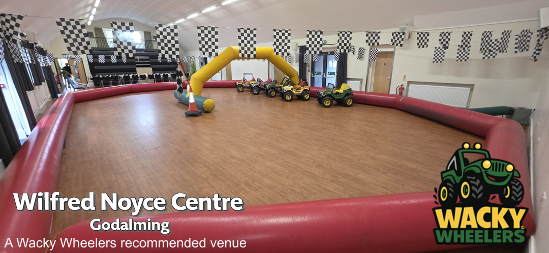 The Wilfrid Noyce Centre is a spacious, modern, versatile venue located in Godalming town centre perfect for Wacky Wheelers Mini Jeep driving parties. It offers a well-sized indoor hall that works perfectly for setting up an exciting and safe driving track. The space allows children to drive freely while still leaving room for seating, party food, and spectators, making it ideal for well-balanced birthday parties. Popular with families in Godalming, Guildford, and across Surrey, it provides a convenient and easy-to-manage setting for a fun and memorable kids’ driving party.