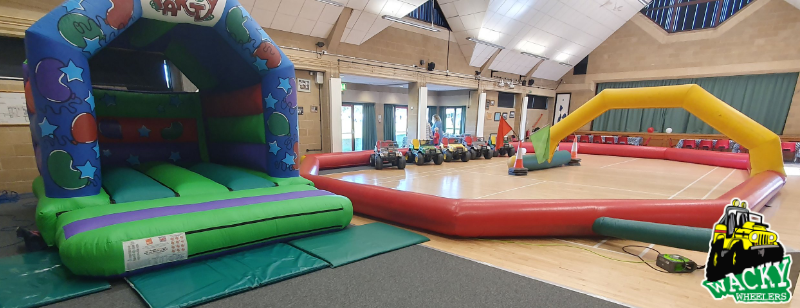 A big part of a successful Wacky Wheelers party is our ability to keep the group organized and on schedule. Bouncy castles tend to introduce noise, chaos, and distraction – all of which make it harder for us to manage the flow and ensure every child gets a fair and safe turn on the track.